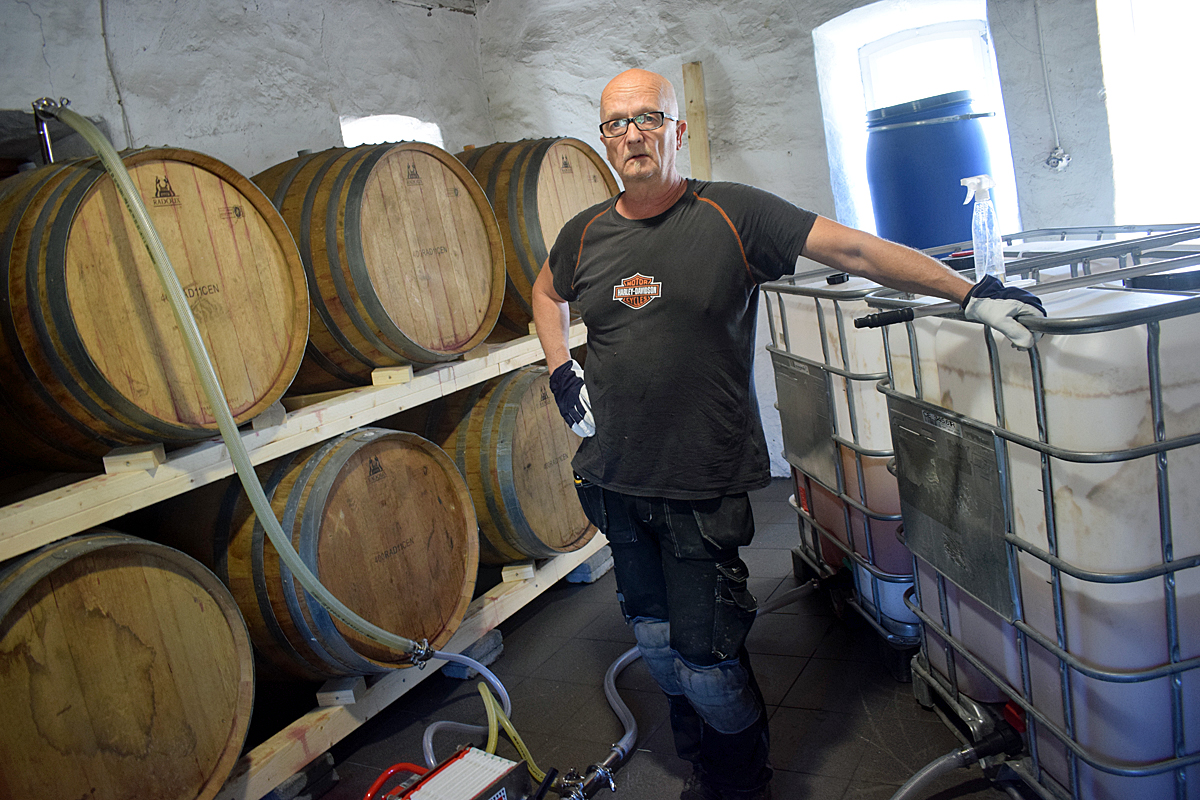 Nu är de första 13 faten fyllda och 5200 liter vört ska ligga till sig i åtta till tolv månader innan den ska blendas och i en del fall också tillsättas frukt eller bär.