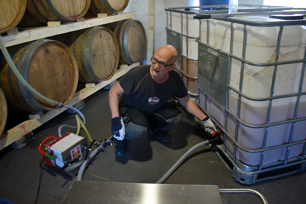 Nu är de första 13 faten fyllda och 5200 liter vört ska ligga till sig i åtta till tolv månader innan den ska blendas och i en del fall också tillsättas frukt eller bär.