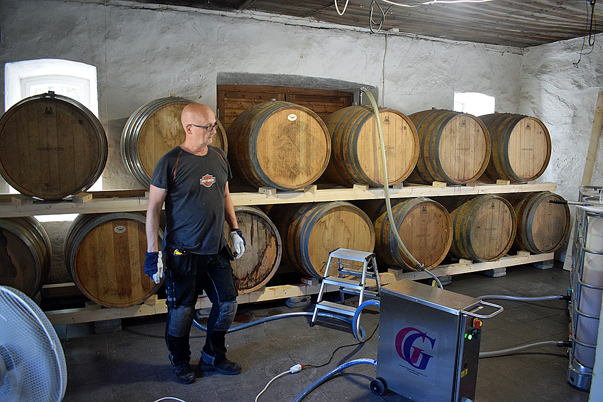 Nu är de första 13 faten fyllda och 5200 liter vört ska ligga till sig i åtta till tolv månader innan den ska blendas och i en del fall också tillsättas frukt eller bär.