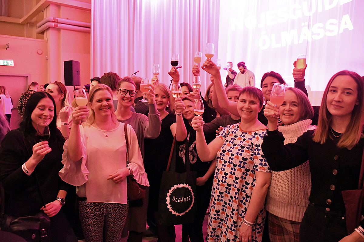 Ölgäris medlemmar samlades för en skål under mässan.