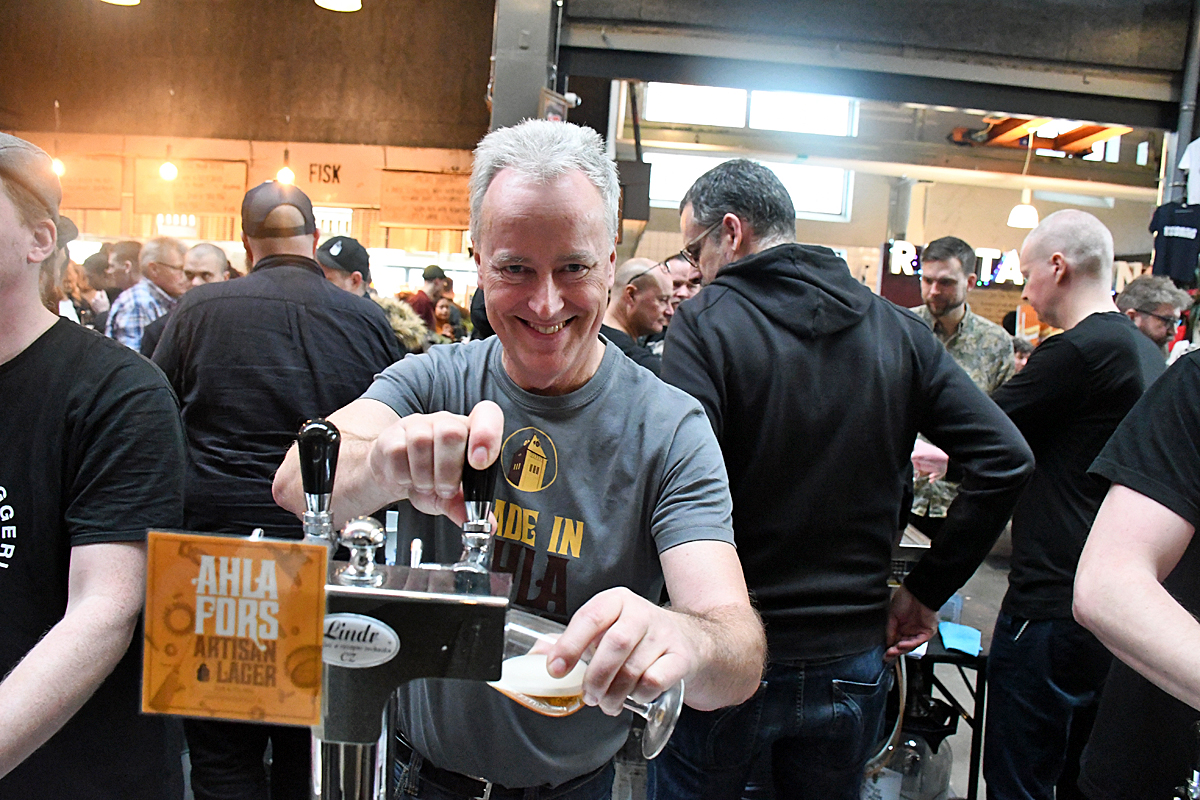 Anders Merienus från Ahlafors tyckte om att få hälla upp öl till nyfikna gäster.