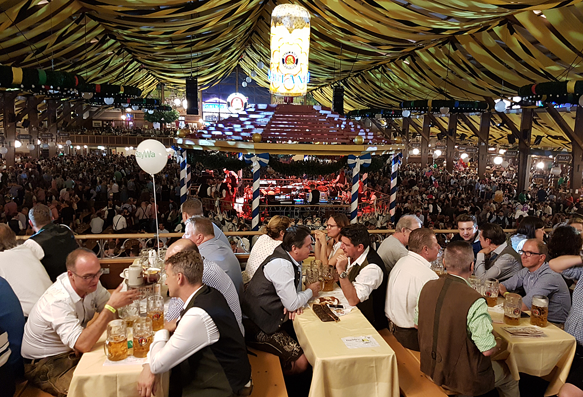 I år var det 185:e gången som Oktoberfest genomfördes och som vanligt är det sex lokala bryggerier som har hand om öltälten. Det handlar då om Paulaner, Hofbräu, Hacker Pschorr, Spaten, Augustiner och Löwenbräu. Runt själv ölområdet finns också tivolin och en massa andra utställare.