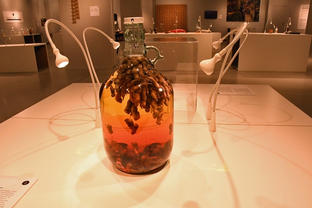 En hel del annan alkohol finns också i utställningen och det mesta sticker ut på sitt sätt. Där finns till exempel Fishky, en whisky som lagrats på silltunnor, och ett Mouse Wine, som görs på nyfödda möss.