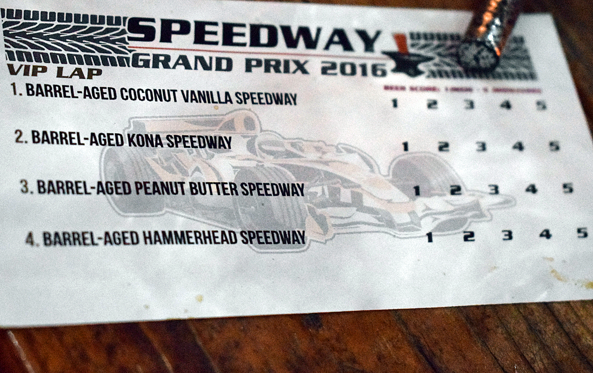 Ölen serveras fyra i taget och du måste ha köpt biljetter i förväg för att få prova. Dessutom finns en hel del varianter utöver det på de vanliga kranarna. Till slut blev det drygt 20 smakprov på olika varianter av Speedway Stout.