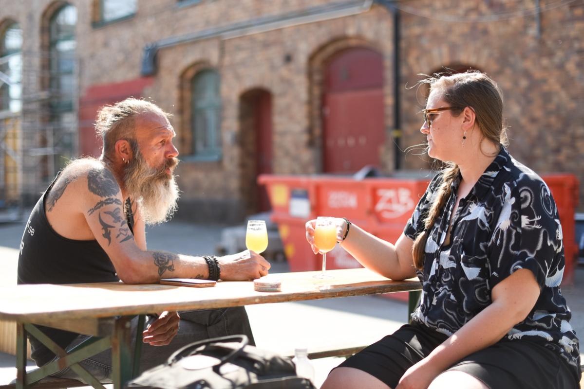 Thomas Isacson och Sophie Evholt var bland de första gästerna vid Spikes premiärevent för Ängla-Pils.