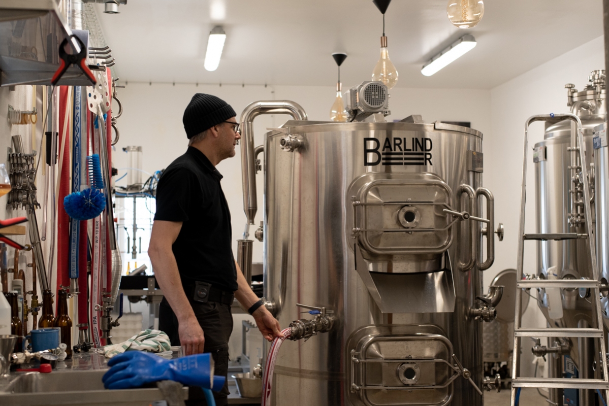 Barlind Beer och ägaren Jonas Barlind tar nu ytterligare ett steg i utvecklingen med ett nytt bryggverk. Det som började i svärmors garage finns numera i hamnen på Björkö i Göteborgs norra skärgård. Lite trångt börjar det bli, men en av fördelarna med det nya bryggverket som Jonas Barlind uppskattar är att det är på hjul. Efter koket kan han ställa det i ett hörn och eftersom det är byggt på höjden tar det inte så mycket plats.