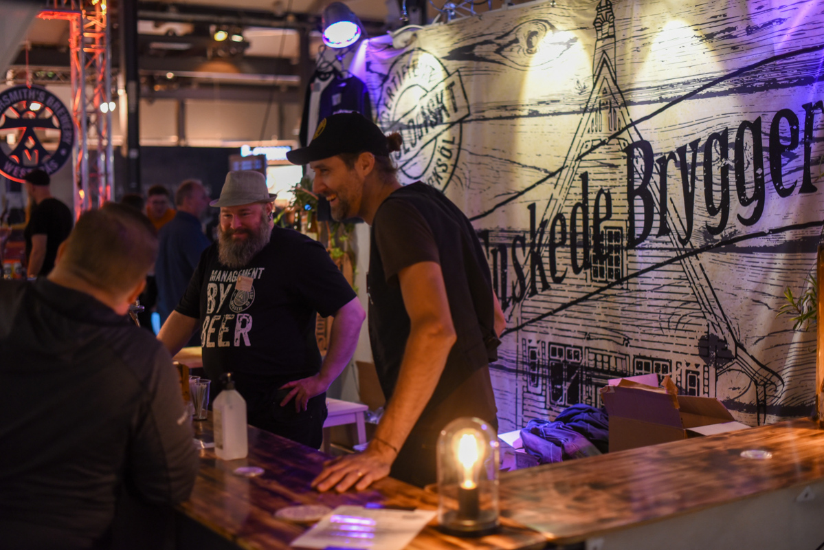 Gamla Enskede killar pratar öl med gästerna.