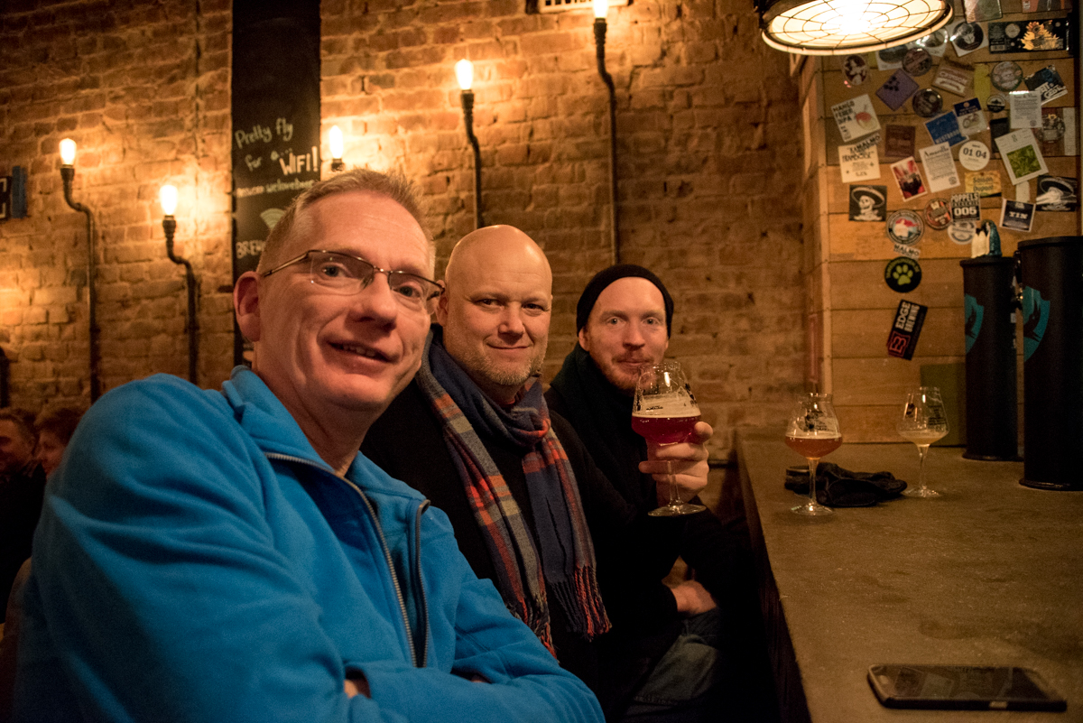 Thomas Mattsson kom direkt från Spike och West Coast på Haket till Cigar City på Brewdog. Här tillsammans med Peter Bergquist och Thomas Jonsson.