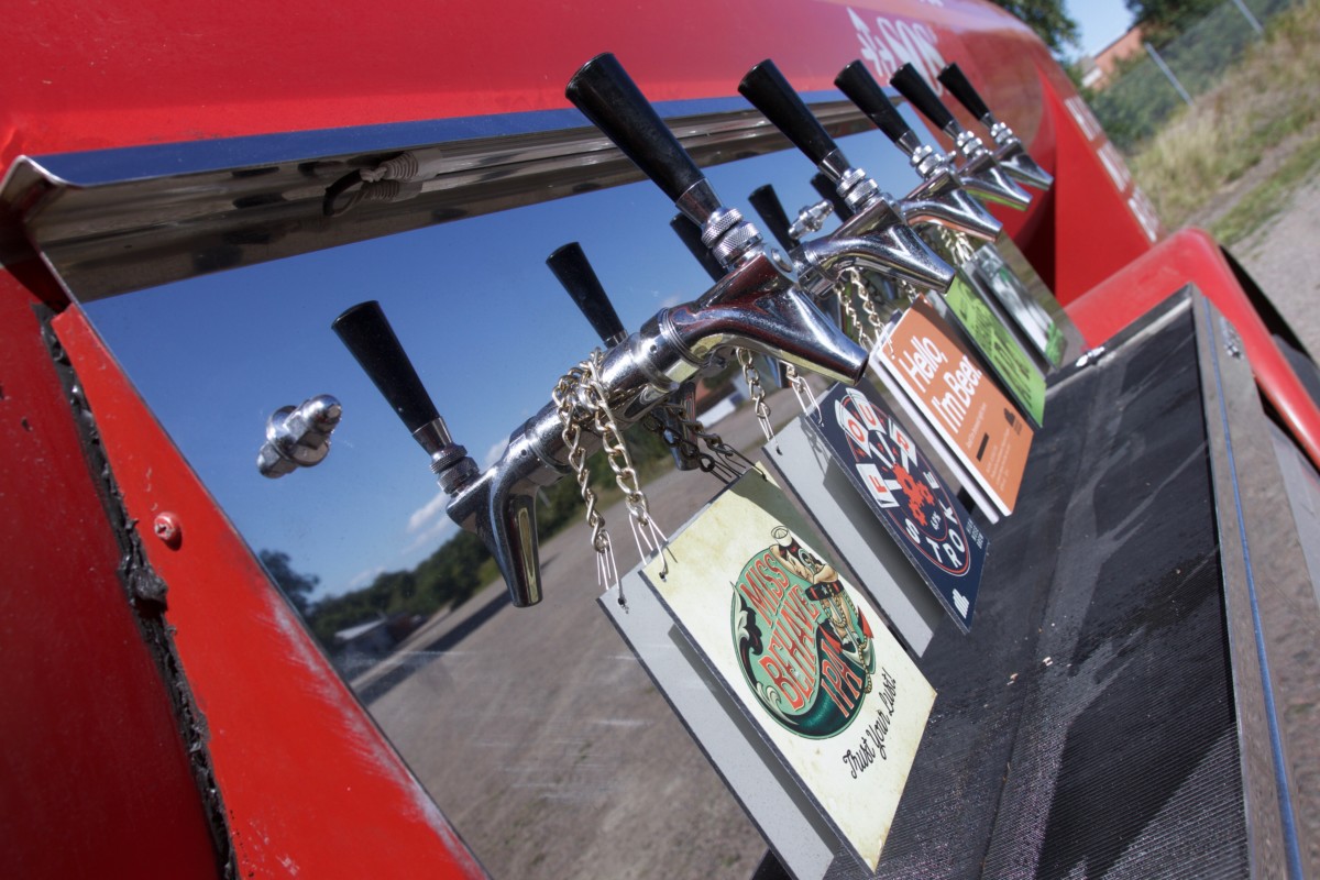– Brandmän blir helt galna när de ser den, en brandbil ombyggd till ölbil… Folk gillar lekfullheten, att det är genuint och ingen plast.