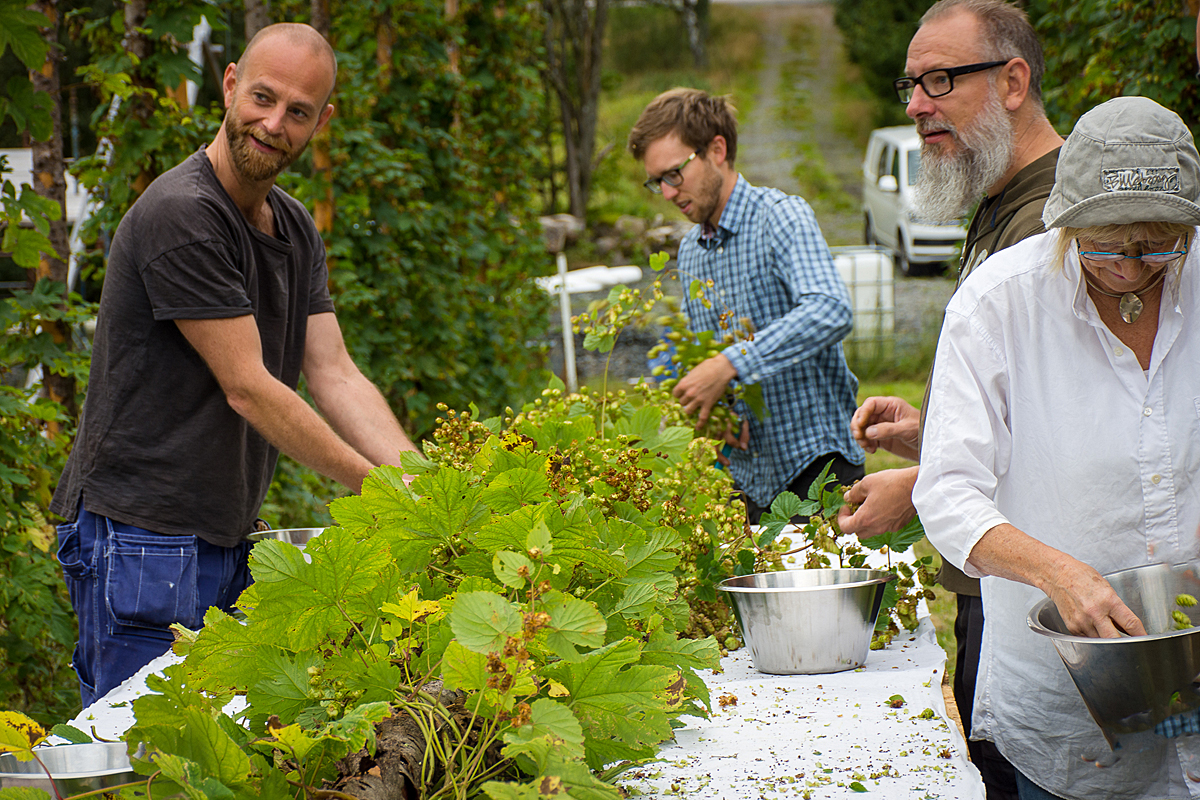 Representanter från de båda bryggerierna fanns på plats för att skörda humlen och för Electric Nurse blev det även bryggning på humlen under helgen. Där blev det riktigt lokalt fokus där jästen dessutom kom från Hisingen.