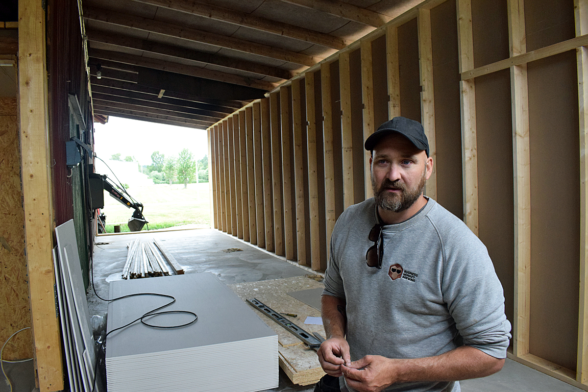 Johan Malmberg har fullt upp med byggandet av det nya brygghuset på gården i Töllsjö.