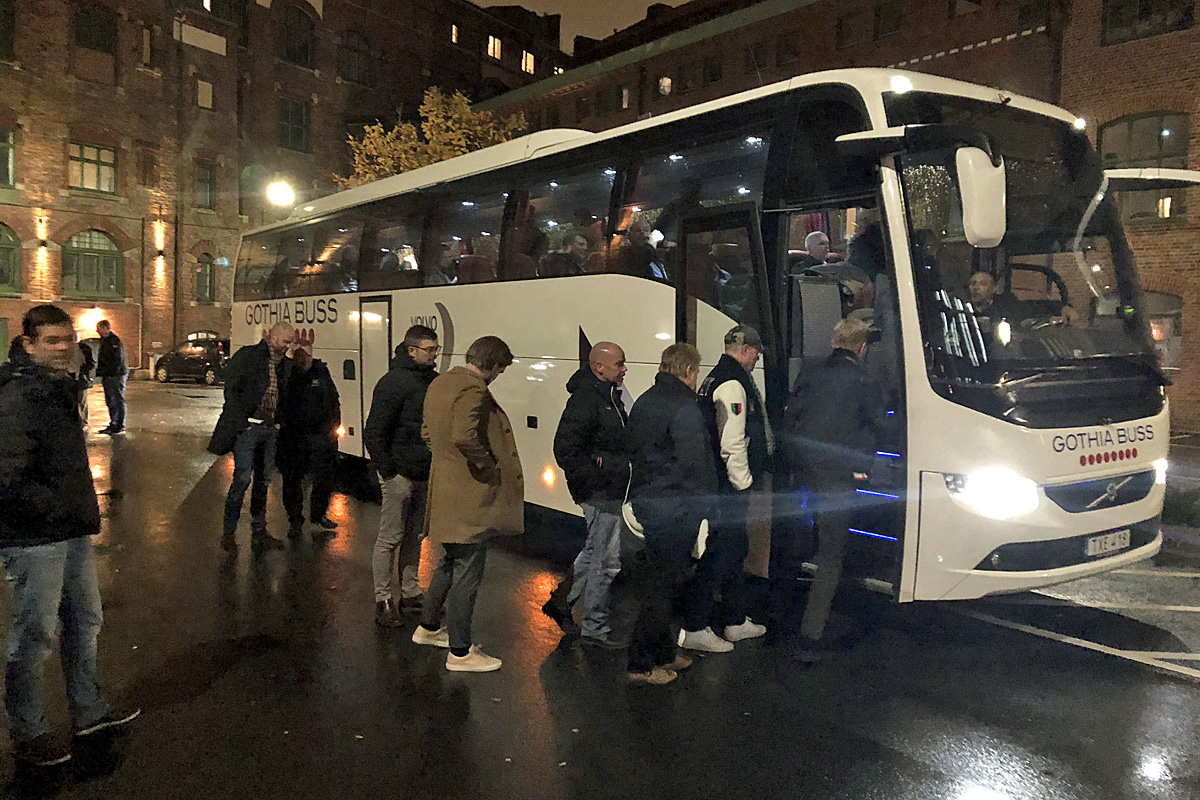 55 ölintresserade var med på den första resan, bland annat Kennet Andersson, en av VM-hjältarna från fotbolls-VM 1994.