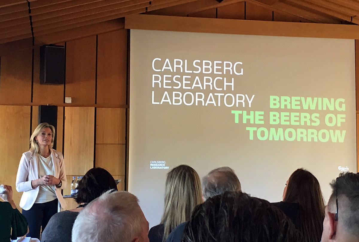 Birgitte Skadhauge från Carlsbergs laboratorium pratade om ölets framtid och Carlsbergs omfattande forskning.