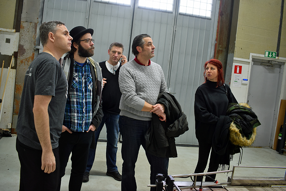 David de Courcy visar upp råvarulagret för Peter M Eronsson, Peter Setterberg, Nils Wibeck och Karin Mellberg.