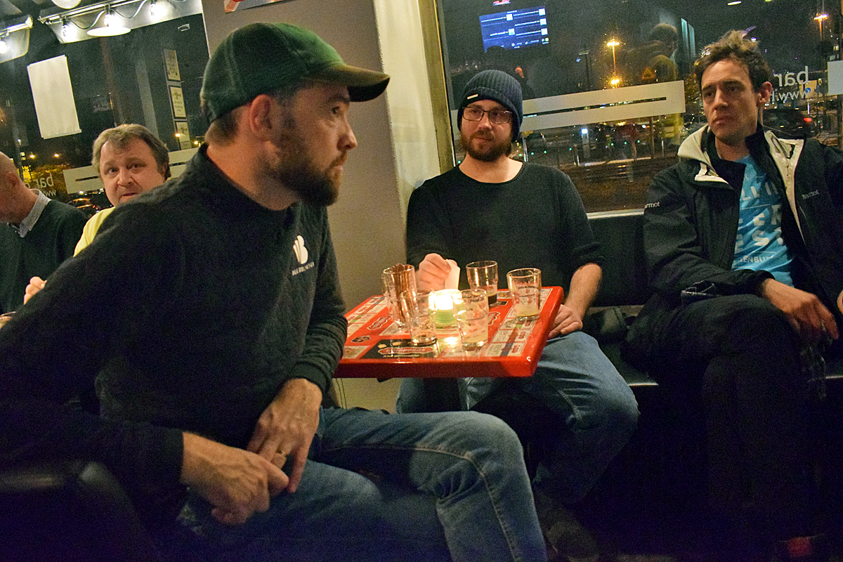Adam Norman och Jimmy Nilsson hamnade vid samma bord som Pelle Frost från All In Brewing.