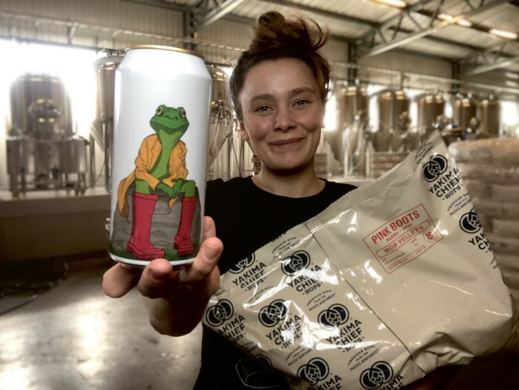 – En riktig pang-IPA med 100 procent årets Pink boots blend! En ordentligt humlad New England IPA som kommer släppas på systembolaget. ”Pink Boots Revolution” ligger på standardprocenten 6,5 och kommer torrhumlas i två omgångar med blenden och har såklart också en skön mängd av humlen på hetsidan, säger hon.