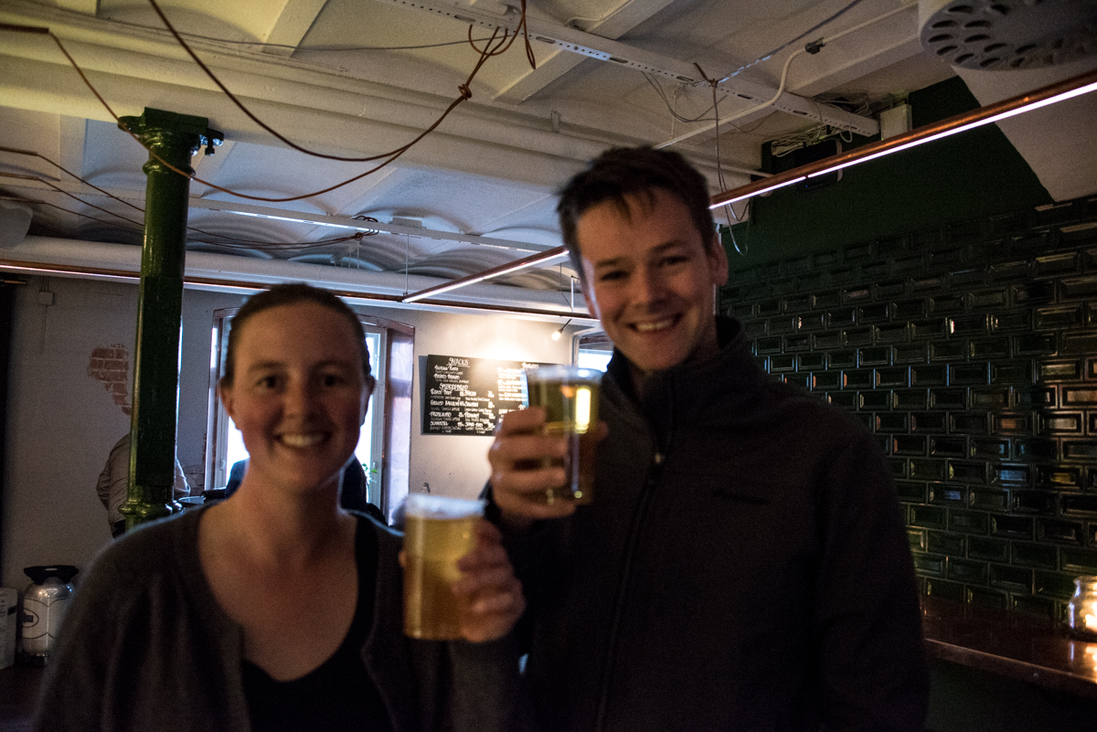 Amanda Peattle och Alexander Hutchings, nya zeeländare, som hittat till en australiensisk pub i Jönköping.