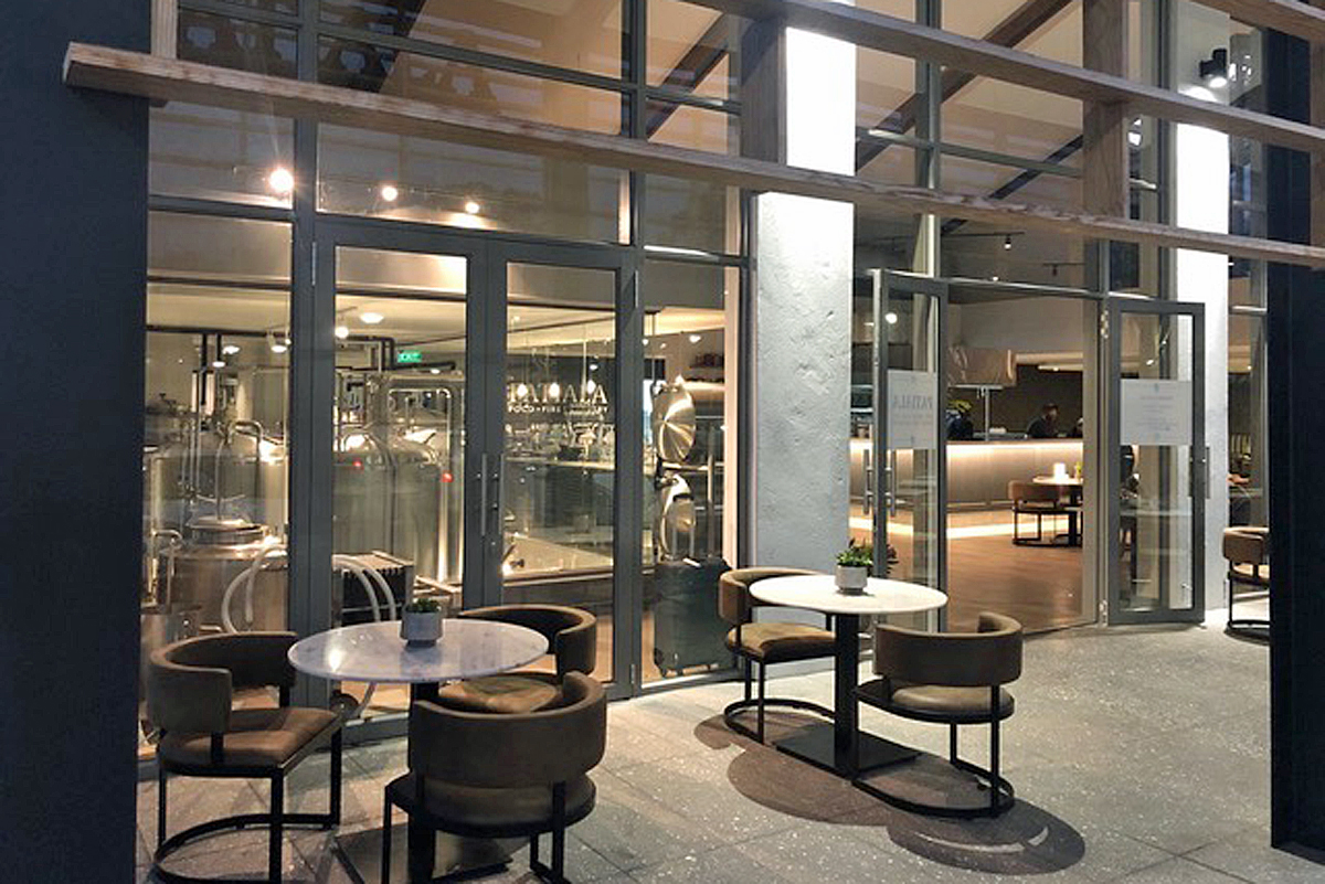 Restaurangen har ett helt öppet kök som gästerna kan se och det går även att följa bryggprocessen de dagar som det produceras öl.