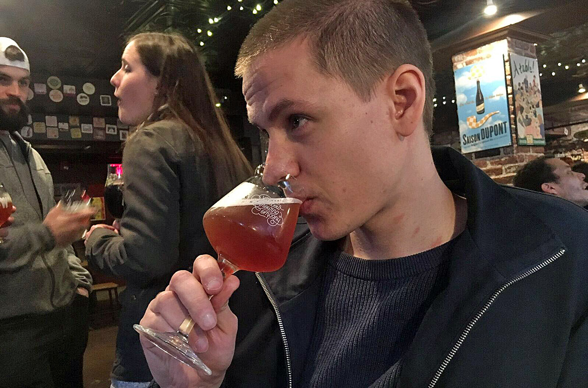 Victor Åström njuter av en av ölen hos Oxbow.
