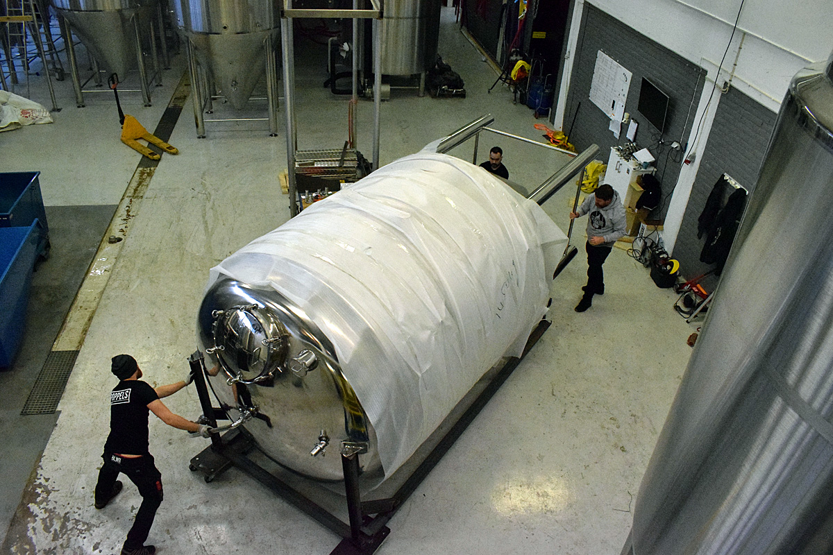 Det har varit en hel del jobb med att få de åtta tankarna på plats i bryggeriet, men nu står allt där det ska. Det innebär att man har utökat sin tankkapacitet med hela 64000 liter.