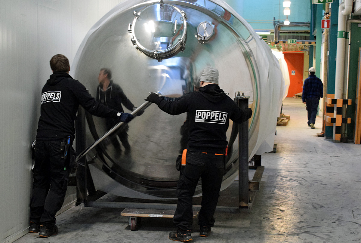Det har varit en hel del jobb med att få de åtta tankarna på plats i bryggeriet, men nu står allt där det ska. Det innebär att man har utökat sin tankkapacitet med hela 64000 liter.