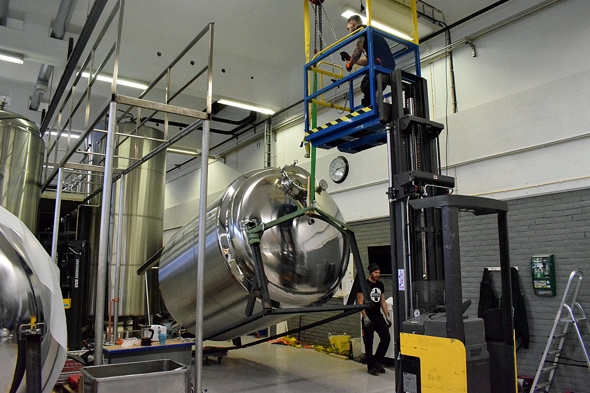 Det har varit en hel del jobb med att få de åtta tankarna på plats i bryggeriet, men nu står allt där det ska. Det innebär att man har utökat sin tankkapacitet med hela 64000 liter.
