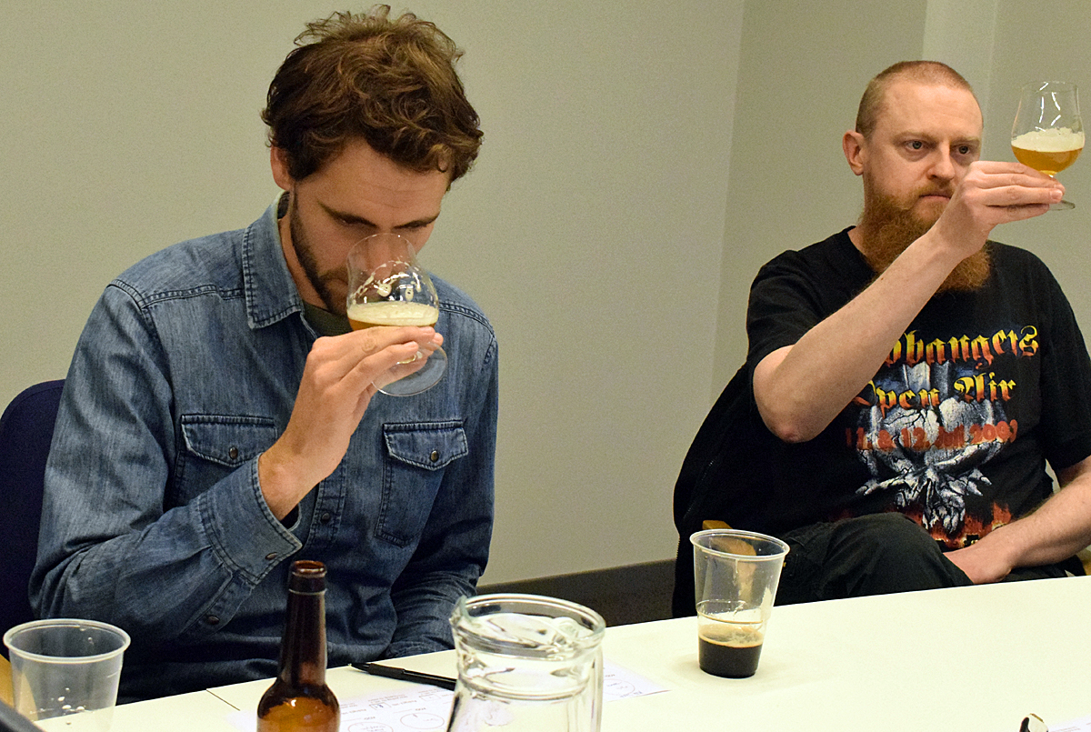I mitt inre hörde jag dem redan innan de ens smakat på ölen: “infekterad”, “syreskadad”, “DMS”, “brittisk IPA” och alla andra felsmaker jag kunde tänka mig. Domarna är uppdelade på två rum. Jag gör entré i det första och häller upp ölen med darriga händer. Domarna tar varsitt glas. De ser allvarliga ut. Smuttar lite försiktigt. Spottar ut. Skriver på sina små lappar men säger ingenting och jag börjar svettas. Allt jag vill är att de säger “drickbar”. Ronny Karlsson, min kollega på Beernews, som är där för att fotografera, skrattar rått och fotograferar naturligtvis när Thomas Mattsson spottar ut mitt förstlingsverk.