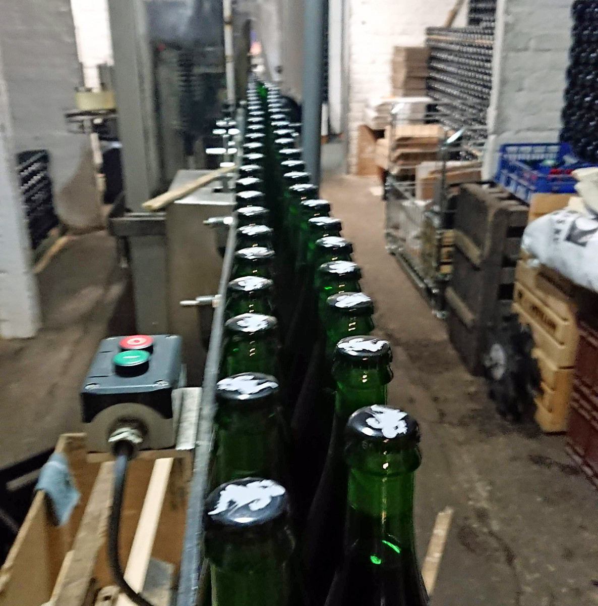 Efter flaskningen fick han också vara med och bygga upp de väggar med flaskor som finns runt om i bryggeriet. Ett arbete som kändes lite lurigt till en början.