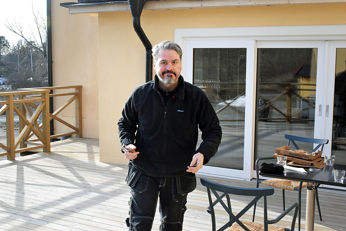 Magnus Karperyd på den uteplats där det lär bli gott om folk under sommarhalvåret.