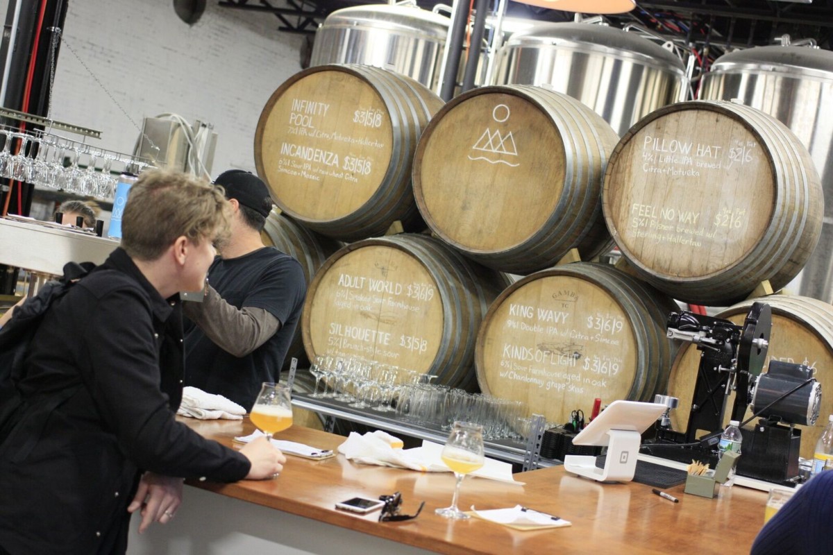 Inne bland fatlagringstunnor, maltsäckar och rostfria jäskärl så provar vi oss igenom utbudet och förutom olika saisons och farmhouse-öl bjuds det även på pilsner och IPA. Vi faller för en snäll, mjuk och len saison de kallar Silhoutte med citrusfrukten tangerine och deras sur-IPA Incandenza.