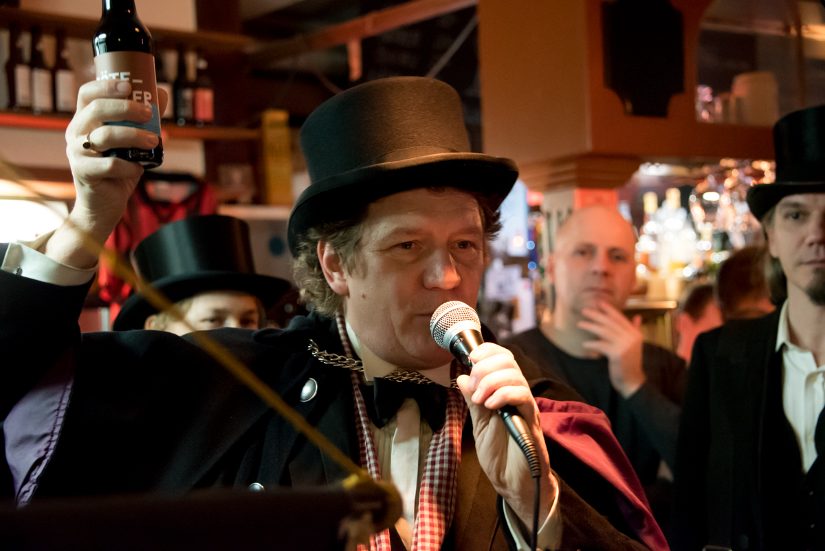 Otto Lundell från PDA förklarade för bargästerna varför man varit med och tagit fram portern.