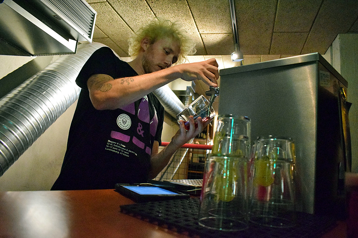 De två sista kranarna löstes genom att hyra in en serveringscykel från Folkölsbutiken, där några av Dugges folköl serverades.