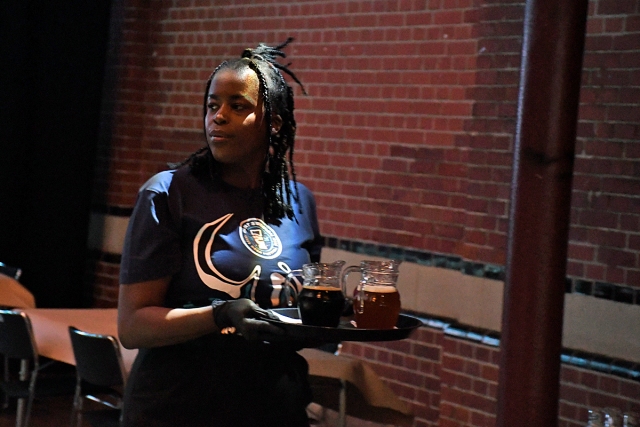 Gästerna visade från entrén till sitt bord där man fick sitta under hela passet och ölen beställdes via en hemsida. Serveringspersonalen fick verkligen jobba hårt och såg till att över 300 personer fick sina öl till bordet.