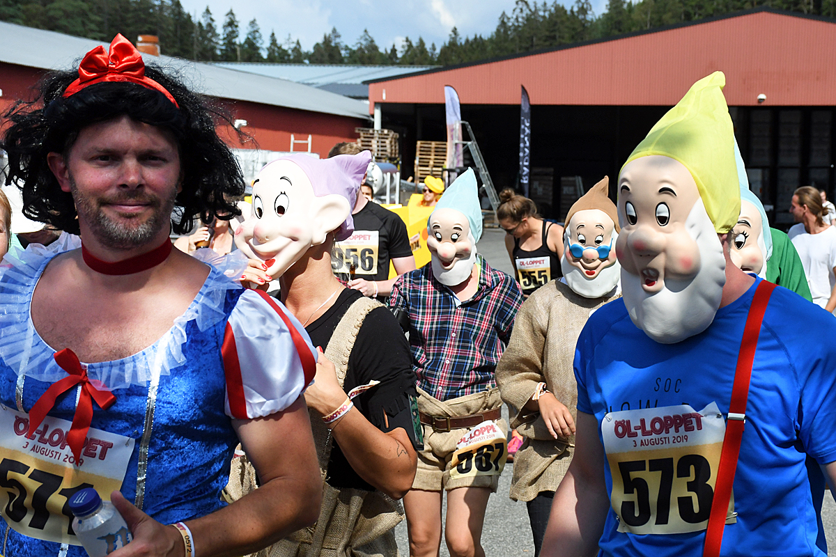Bland de sista att lämna startområdet var Snövit och dvärgarna.