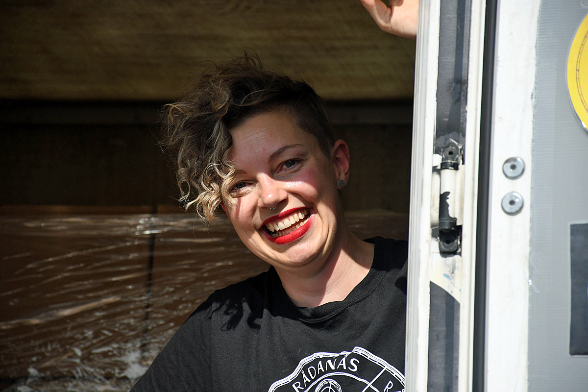 Carolina Gajsbauer svettades en del inne i ölbilen, men var på gott humör när kunderna var många.