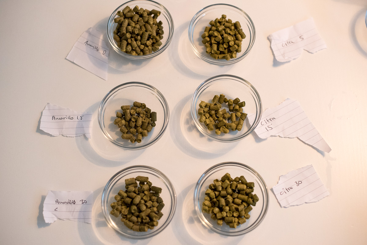Ett par dagar till gick. Jästen jobbade och jag läste allt jag kunde hitta om torrhumling. Jag visste varför man torrhumlar, men inte hur och när. Ju mer jag läste desto mer kändes dessutom de 80 gram jag hade sparat väldigt snålt, speciellt med en amarillo som luktade destillerat vatten. Lösningen blev 100 gram citra till samt lite cascade som blev över från bryggning två, som inträffade samma helg. Så även om allt annat misslyckas nu så är det i alla fall ett väldoftande misslyckande. Amarillon gick i soporna.