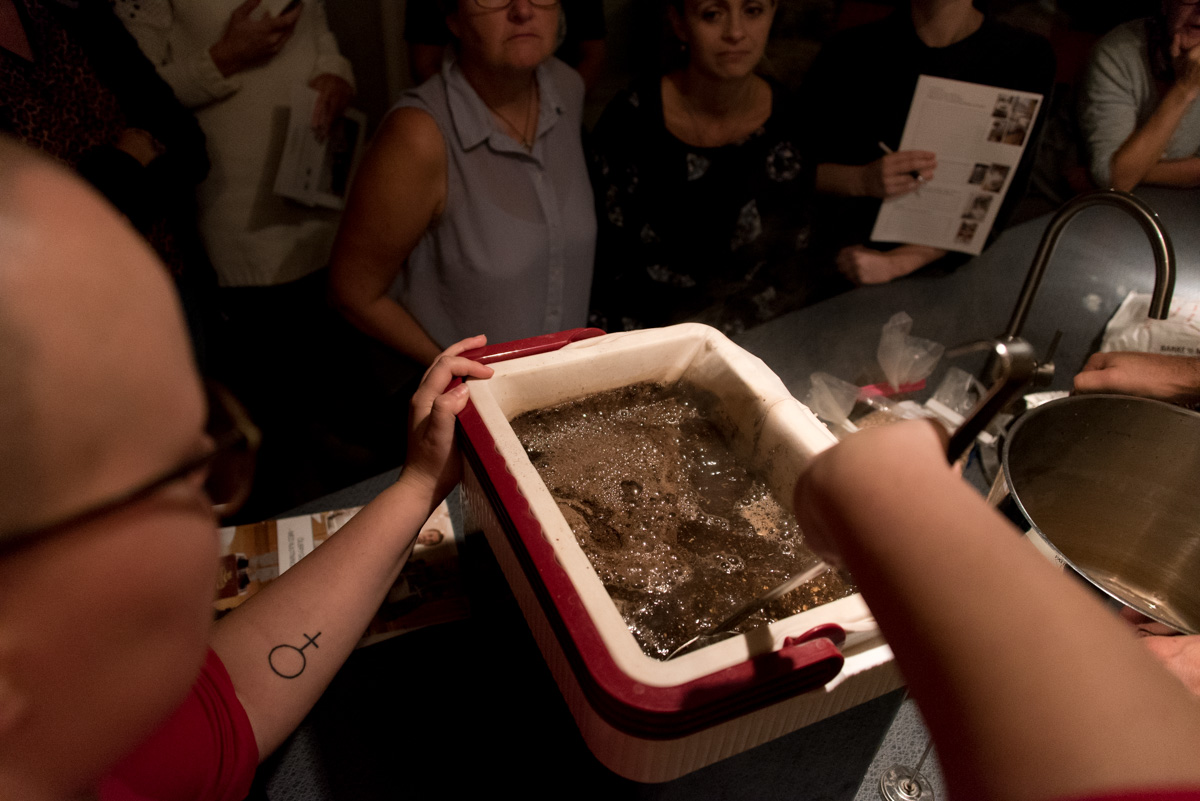 Under kvällen fick gruppen en grundlig genomgång av Simon Svensson i allt från mäskning och humle till kok och renlighet. Ölen som blir resultatet en stout kommer att delta i Porter & Stout-träffen med Gothia Hembryggarförening i november i Göteborg.