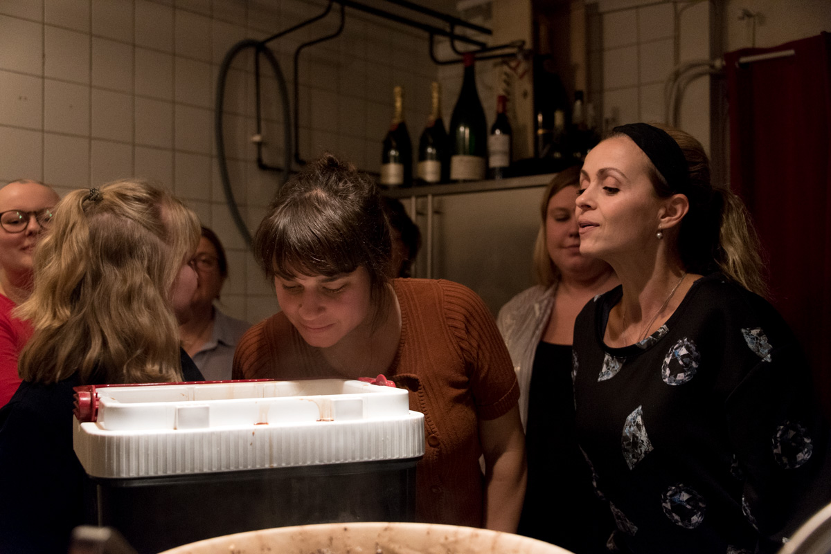 Under kvällen fick gruppen en grundlig genomgång av Simon Svensson i allt från mäskning och humle till kok och renlighet. Ölen som blir resultatet en stout kommer att delta i Porter & Stout-träffen med Gothia Hembryggarförening i november i Göteborg.