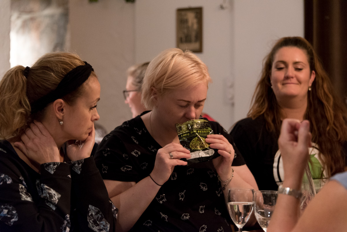 Deltagarna fick lukta på humle i form av Mosaic och Magnum, godast luktade Mosaic, tyckte Madeleine Christensen.