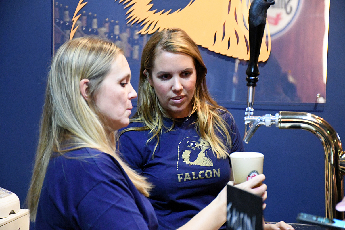 Katrin Legeby och Louise Eckerbom skötte serveringen av Falcon-ölen.