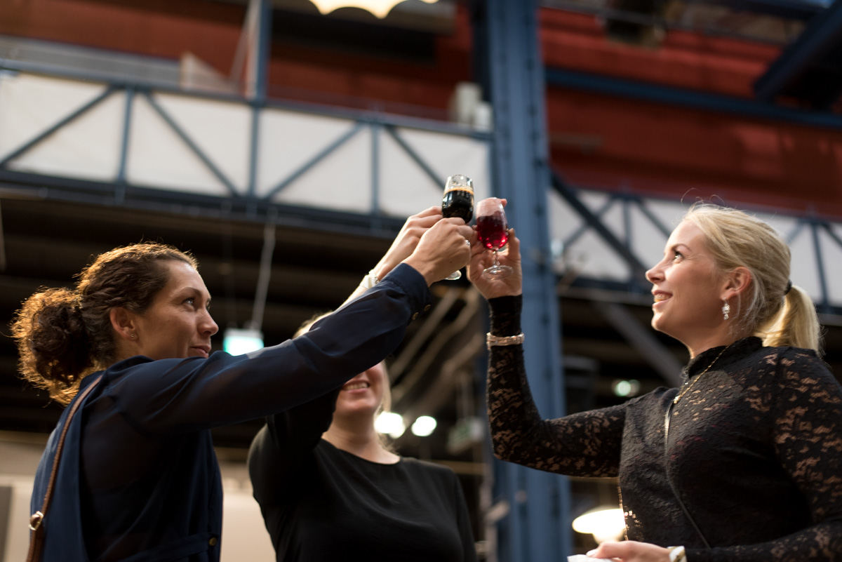 Susanne Nilsson, Malin Lundström och Alexandra Munther skålar in sin premiär på All In.