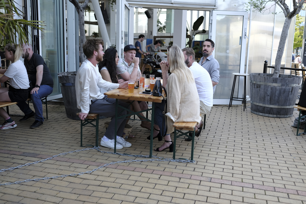 Även i coronatider tillåter de stora ytorna att det kommer gott om besökare och det var välbehövligt när det fina vädret säkert bidrog till att många lediga människor ville dricka öl.