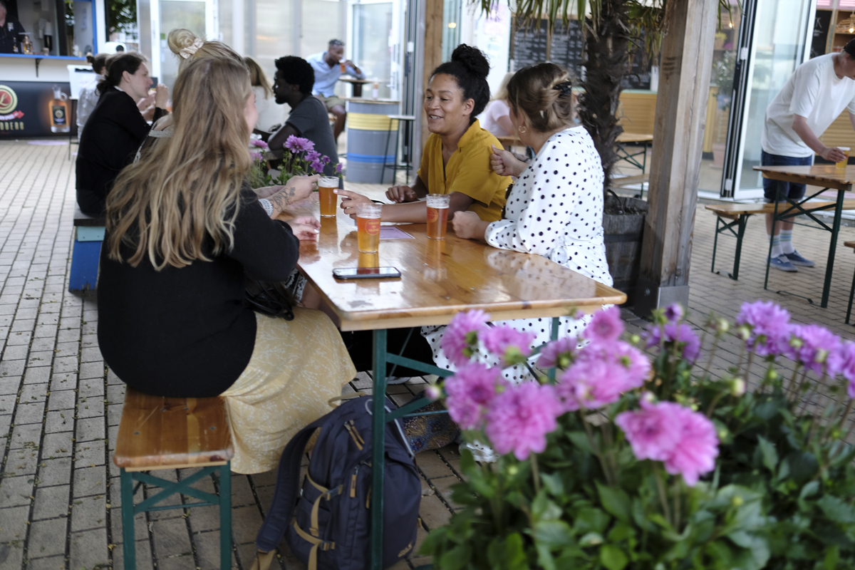 Även i coronatider tillåter de stora ytorna att det kommer gott om besökare och det var välbehövligt när det fina vädret säkert bidrog till att många lediga människor ville dricka öl.