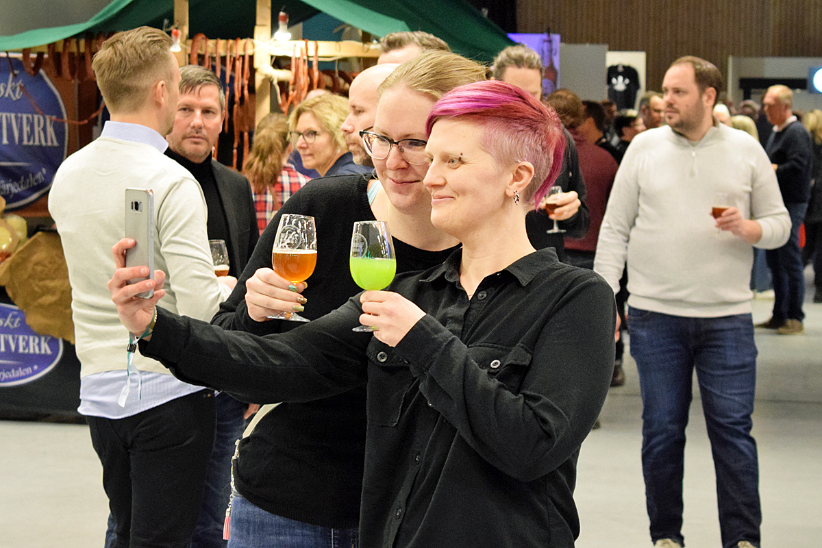Sandra Sävström och Lina Eriksson ville föreviga Poppels gröna öl innan de smakade den.