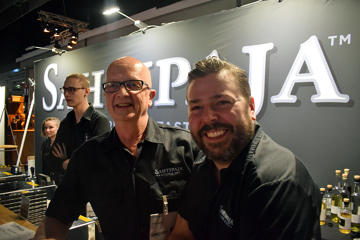 Timo Krjukoff och Linus Bindel trivdes i Sahtipajas monter.