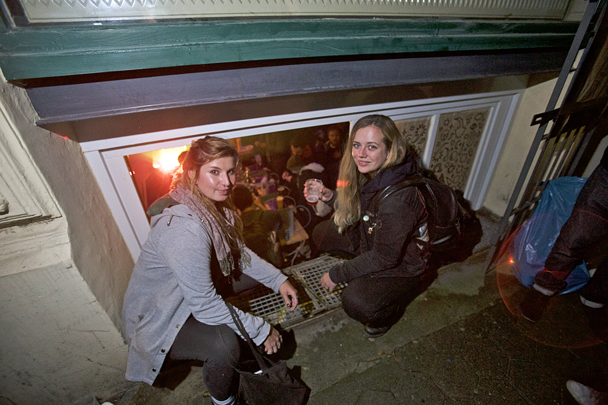 Wiebke Schroter och Iris Eickert höll koll på festen via ett fönster.