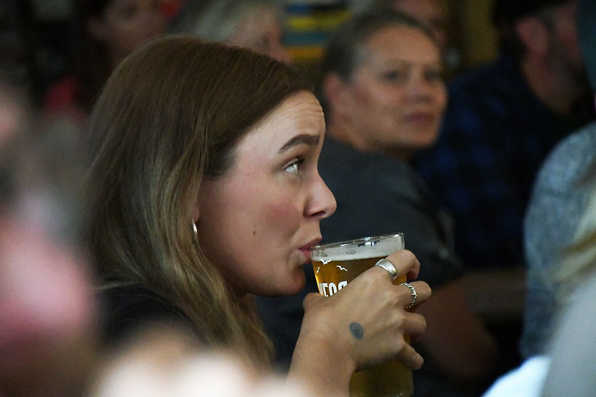 När gästerna hunnit anlända och köpa sig en öl började jubileumsprogrammet från scenen. Martin Permer höll i trådarna och kollegorna från podden fanns förstås med en hel del på scenen.