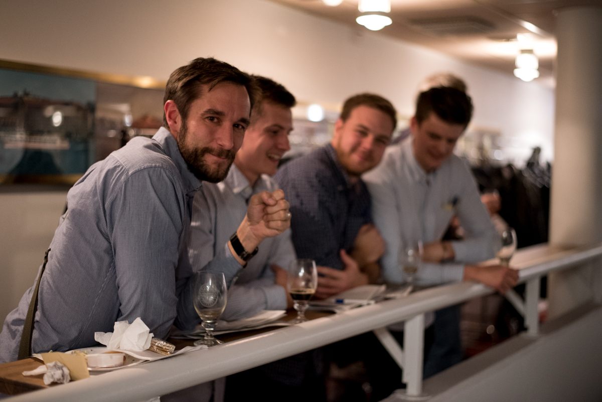 Patrik Bernhardsson, Joakim Nygren, Jonathan Fahlbeck och William Nordkil hade sökt sig ut i lugnet i hotellets atrium.
