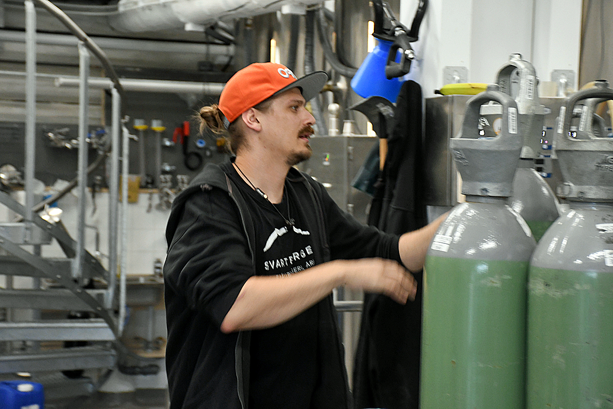 Där står ett bryggverk på 2000 liter och den expansionen kom verkligen i rättan tid. Nu är det nämligen i princip alltid fullt även i de fem jästankar som finns i samma storlek. Tre nya tankar ska installeras, men då är det fullt även i den nya lokalen.