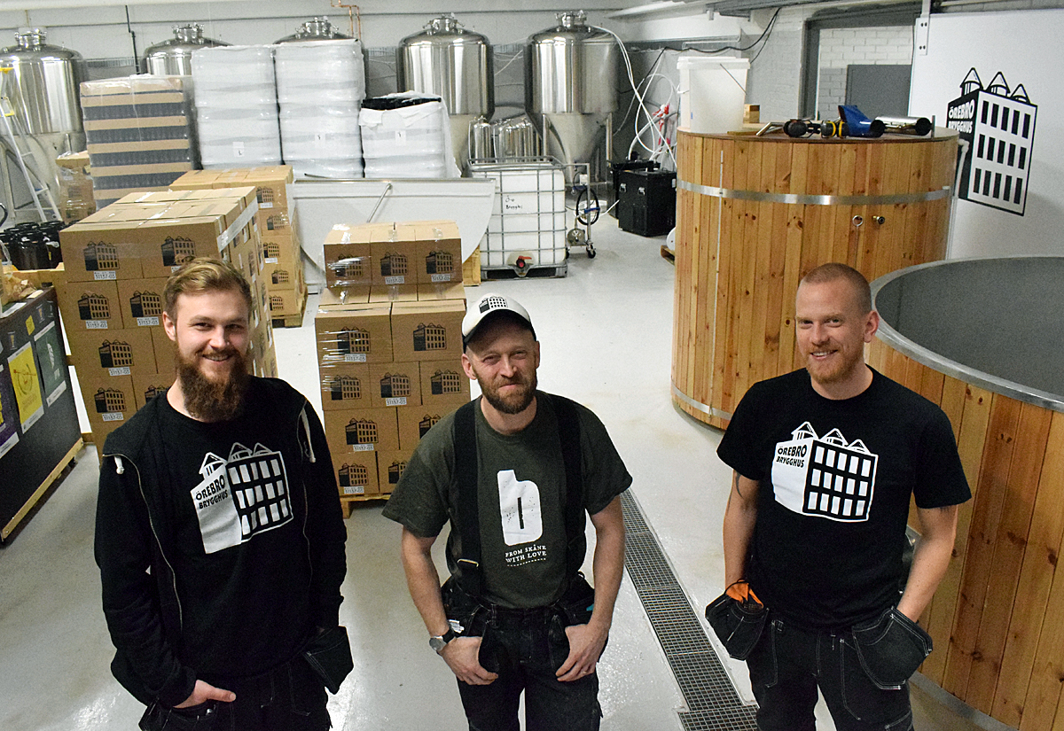 Jesper Palm, Anders Granberg och praktikanten Jens Tirfing har gott om utrymme i bryggerilokalen i Örebro.